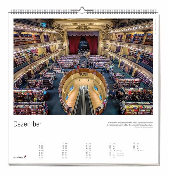 Beim Lesen verschwindet die Welt um uns herum ganz gleich, wo wir uns befinden. Mit wunderschönen Bildern und passenden Zitaten feiert dieser Kalender die Kunst des Lesens, den Zauber des Geschichtenerzählens und die Magie der Bücher.