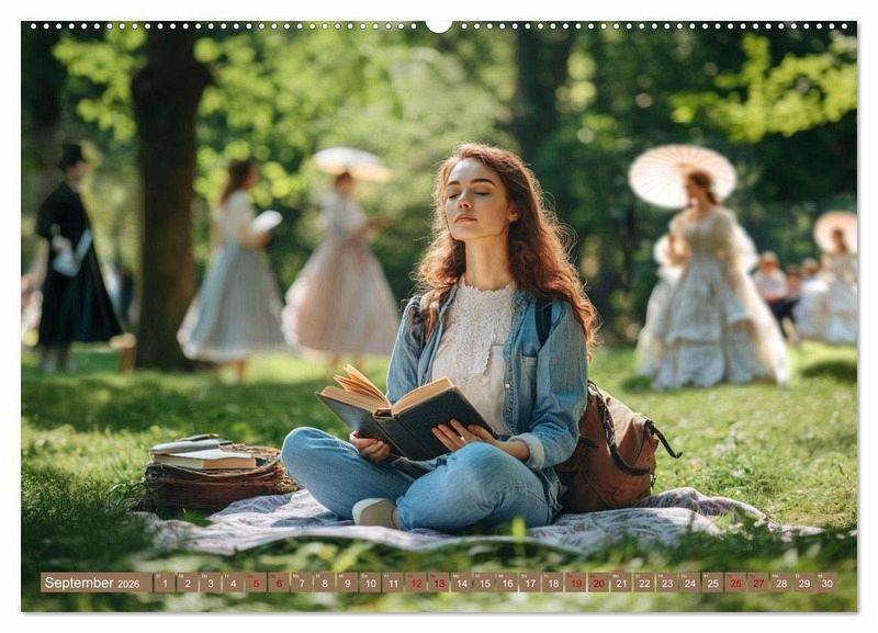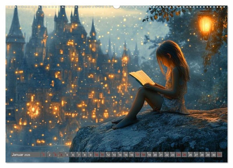 In diesem außergewöhnlichen Kalender begegnen wir Menschen im Moment des Lesens - versunken, still, ganz bei sich. Hinter ihnen erwachen ihre Gedanken zum Leben: Fantasiewelten, Erinnerungen oder Wissen nehmen visuelle Gestalt an. Mithilfe künstlicher Intelligenz wurden diese Szenen kunstvoll inszeniert und verbinden Realität und Vorstellung auf eindrucksvolle Weise. Ein Kalender, der zeigt, wie Lesen innere Welten sichtbar macht.