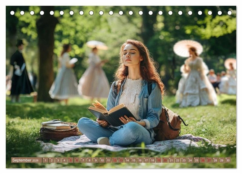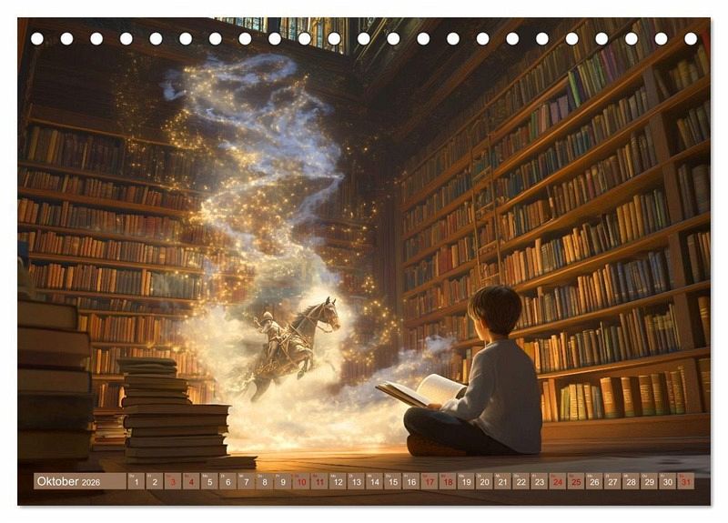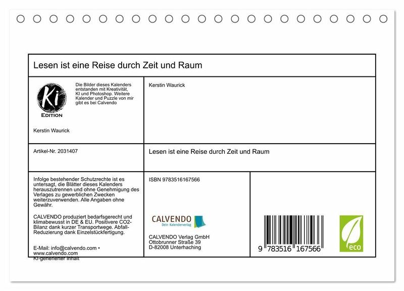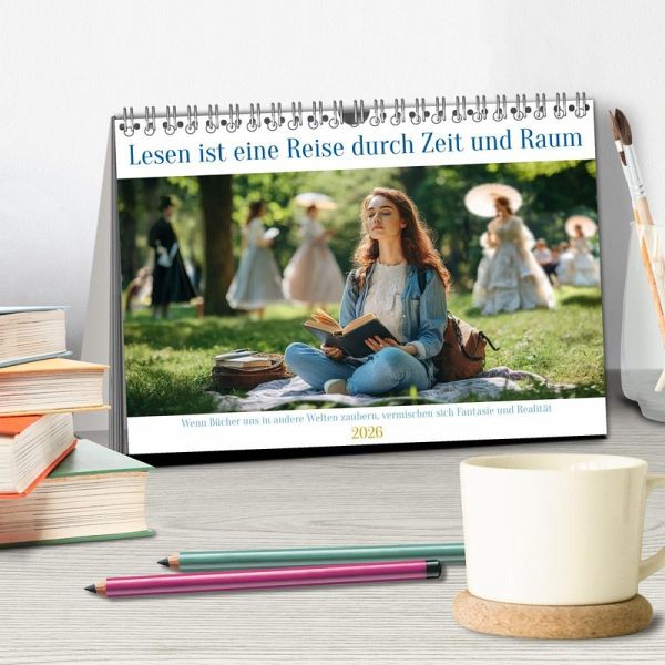 In diesem außergewöhnlichen Kalender begegnen wir Menschen im Moment des Lesens - versunken, still, ganz bei sich. Hinter ihnen erwachen ihre Gedanken zum Leben: Fantasiewelten, Erinnerungen oder Wissen nehmen visuelle Gestalt an. Mithilfe künstlicher Intelligenz wurden diese Szenen kunstvoll inszeniert und verbinden Realität und Vorstellung auf eindrucksvolle Weise. Ein Kalender, der zeigt, wie Lesen innere Welten sichtbar macht.