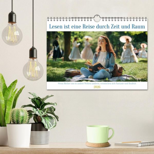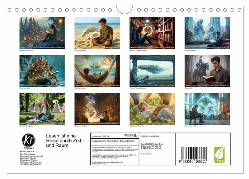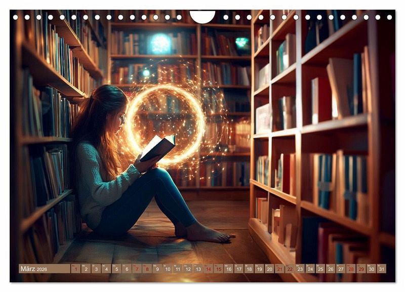 In diesem außergewöhnlichen Kalender begegnen wir Menschen im Moment des Lesens - versunken, still, ganz bei sich. Hinter ihnen erwachen ihre Gedanken zum Leben: Fantasiewelten, Erinnerungen oder Wissen nehmen visuelle Gestalt an. Mithilfe künstlicher Intelligenz wurden diese Szenen kunstvoll inszeniert und verbinden Realität und Vorstellung auf eindrucksvolle Weise. Ein Kalender, der zeigt, wie Lesen innere Welten sichtbar macht.