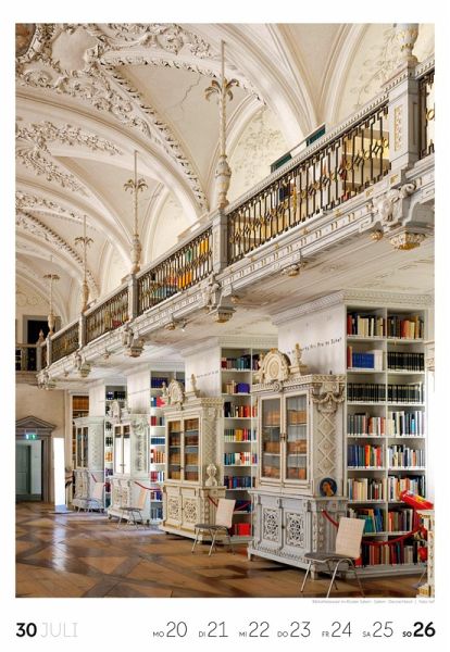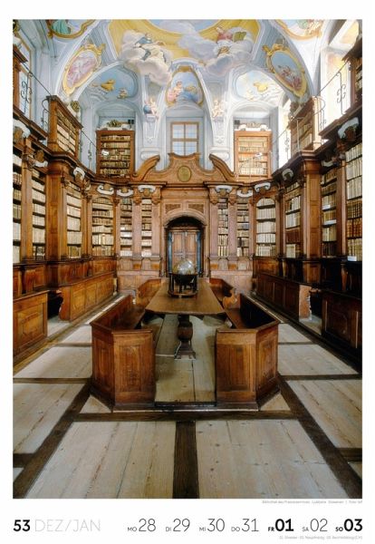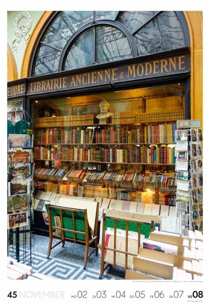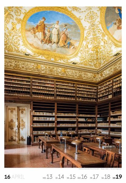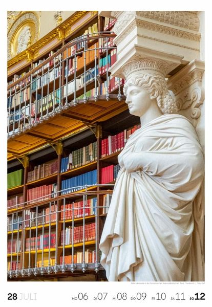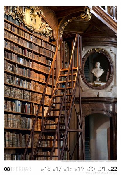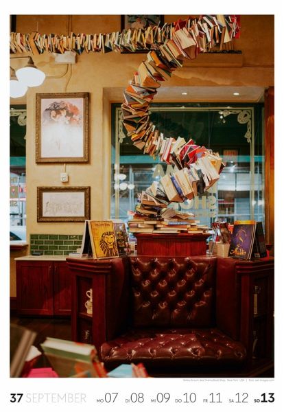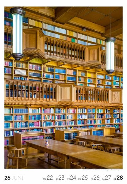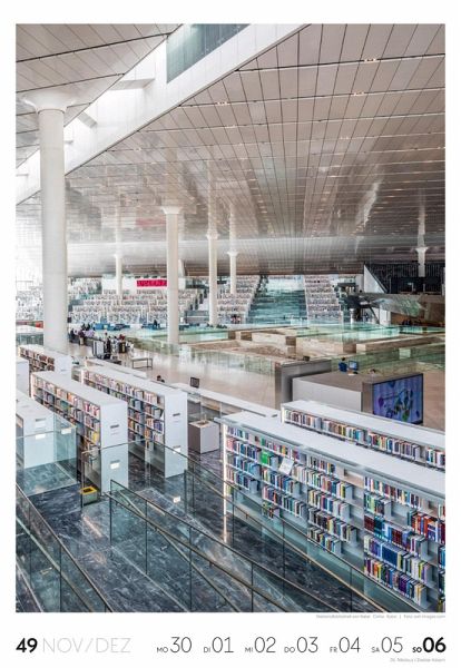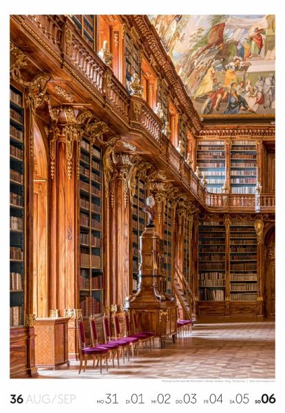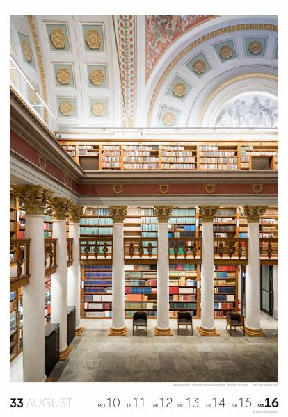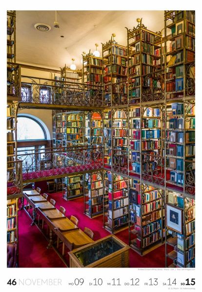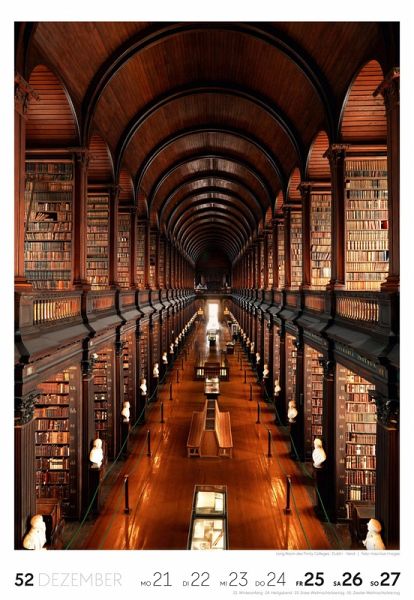 Für Buchfans und Leseratten: Dieser Wochenkalender setzt die Magie des Lesens eindrucksvoll in Szene - mal prunkvoll, mal modern, mal gemütlich oder schlicht beeindruckend. Die klare Bildkomposition fängt die Ästhetik von Lesesälen, Bibliotheken und Buchhandlungen auf einzigartige Weise ein und strahlt dabei stets die Liebe zu Wort, Buch und Wissen aus. Jede Kalenderwoche erzählt eine neue Geschichte rund um die Welt der Bücher. Ideal für alle, die sich von der Schönheit der Bücher inspirieren lassen möchten.