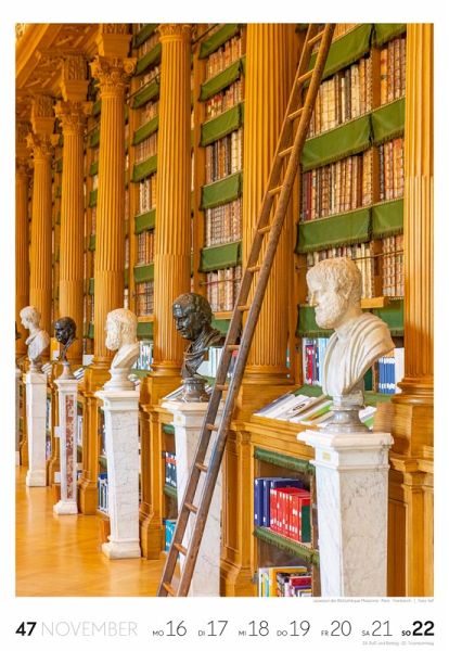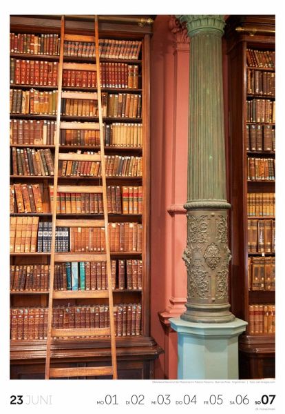 Die ganz große Abwechslung für alle, die Bücher lieben, mit 53 Literatur-affinen Motiven im Premiumformat Bibliotheken-Kalender im Hochformat: 29x42 cm Hochwertiger Wandkalender mit 150 g/qm Papier und Spiralbindung Auf Papier aus nachhaltiger Forstwirtschaft in Deutschland produziert Leistet einen Beitrag zum Ackermann Firmenwald Deutschsprachiges Kalendarium