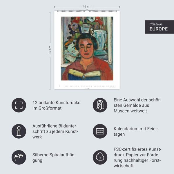 - Bücher lesen macht glücklich! Der große Wandkalender 2026 für alle, die das geschriebene Wort lieben - Frauen feiern die Magie des Lesens: Mit 12 berührenden Meisterwerken der Kunst- Intensive Farben, pittoreske Motive: Ein einmalig schöner Kunstkalender- Großformatiger Blickfang für Wohnräume, Büro oder das eigene Bücher-Zimmer: Wandkalender XXL mit den Maßen 46x55 cm-Ein originelles Geschenk für Buchliebhaber:innen und Freunde der Literatur: Nur bei Weingarten im Athesia Kalenderverlag!