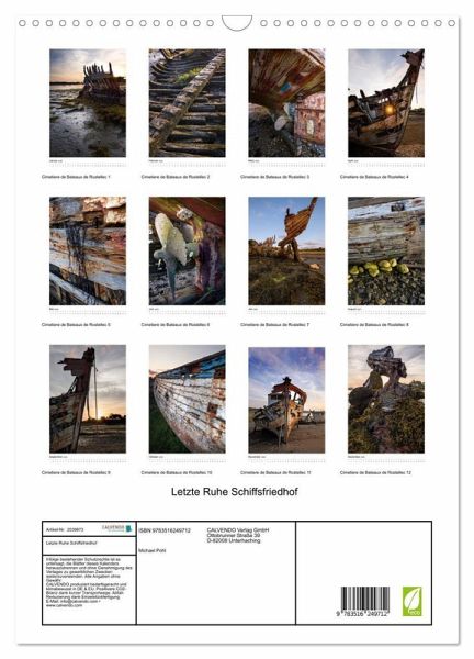 QUALITÄT - Hochwertiger Fotokalender mit 12 wunderschönen Motiven auf lichtbeständigem Bilderdruckpapier, robuste Spiralbindung mit Aufhängebügel.NACHHALTIG - deutliche Abfallreduzierung durch bedarfsgerechte Einzelstückfertigung, umweltfreundliches FSC-zertifiziertes Papier, Produktion in Deutschland, klimabewusste Logistik.PERFEKTES GESCHENK - Kalender für Freunde und Familie, für Kinder und Erwachsene, jung und alt, zu Weihnachten, Geburtstag oder zwischendurch.VIELFALT - Bildkalender in verschiedenen Formaten, z.B. DIN A5, DIN A4, DIN A3 sowie DIN A2. Ob Naturmotiv, Gemälde oder Fotos, ideal für ein persönliches Wohlfühlambiente.Der Schiffsfriedhof von Bateaux de Rostellec, Bretagne von Autor(in): Michael Pohl