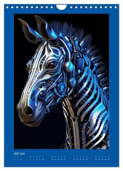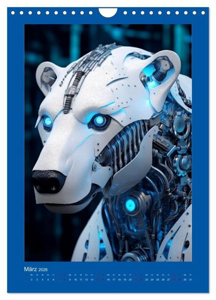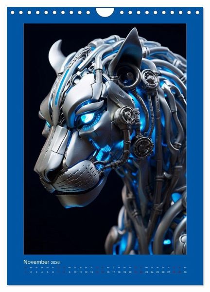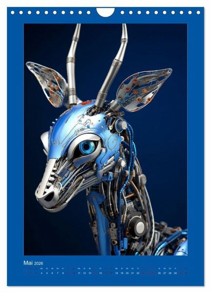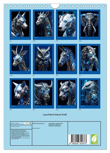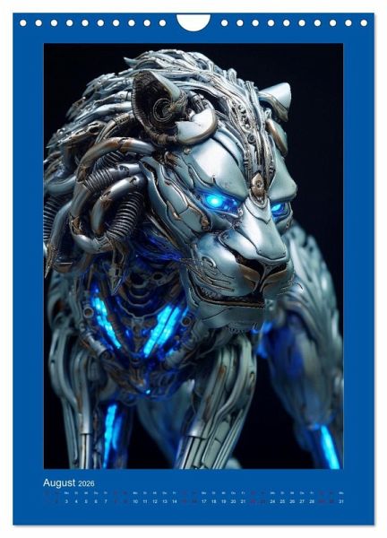 Die Stärke und Schönheit der lebendigen Vorbilder leuchtet durch die Cyborg Fantasietiere dieses Kalenders. Wer gern von einer Zukunft träumt, in der Computer und künstliche Intelligenz unser Leben bereichern, der kann nun ein ganzes Jahr lang genießen, was heute noch nicht möglich ist zu erschaffen. Der Kalender wurde geschaffen mit Hilfe von künstlicher Intelligenz.