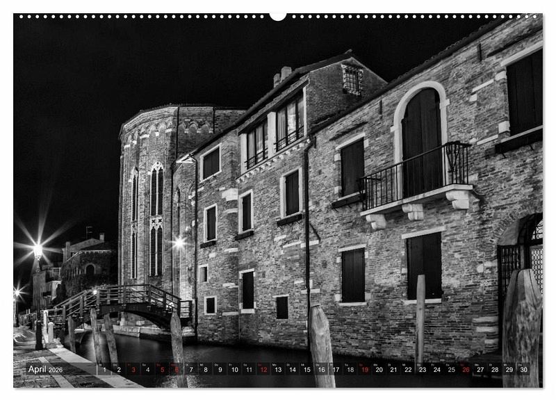 Erleben Sie die zauberhafte Eleganz der Lagunenstadt Venedig in 13 fantastischen nächtlichen schwarz-weiß Motiven sowie kurz vor Sonnenaufgang. Venedig ist eine der romantischsten Städte der Welt, mit schmalen Gassen und Kanälen, luxuriösen Palästen und prachtvollen Kirchen, die alle seit Jahrhunderten unverändert sind. Die Stadt wurde auf dem Wasser erbaut und besitzt eine überwältigende Fülle an Sehenswürdigkeiten - hier ganz ohne die üblichen Menschenmassen in der Stille der Dunkelheit.