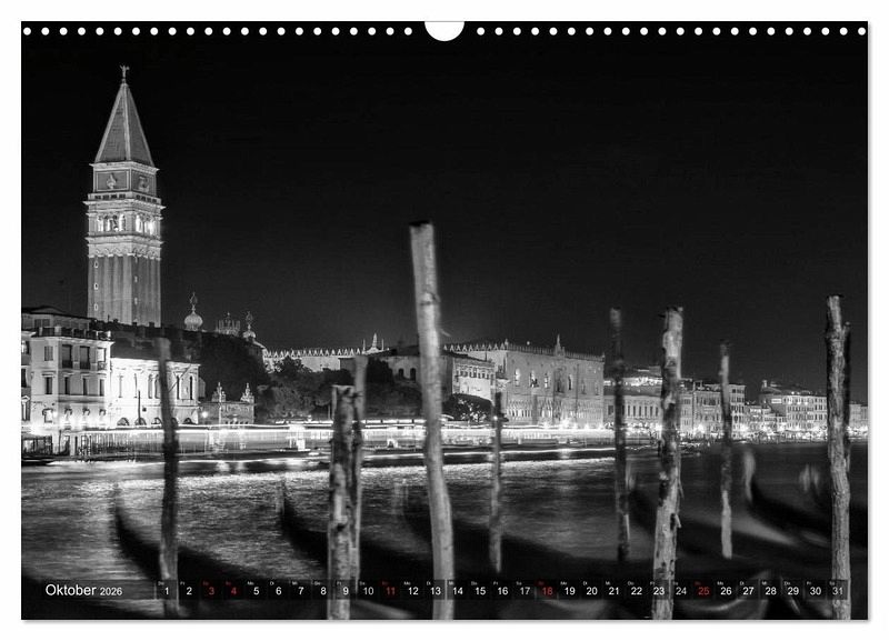 Erleben Sie die zauberhafte Eleganz der Lagunenstadt Venedig in 13 fantastischen nächtlichen schwarz-weiß Motiven sowie kurz vor Sonnenaufgang. Venedig ist eine der romantischsten Städte der Welt, mit schmalen Gassen und Kanälen, luxuriösen Palästen und prachtvollen Kirchen, die alle seit Jahrhunderten unverändert sind. Die Stadt wurde auf dem Wasser erbaut und besitzt eine überwältigende Fülle an Sehenswürdigkeiten - hier ganz ohne die üblichen Menschenmassen in der Stille der Dunkelheit.