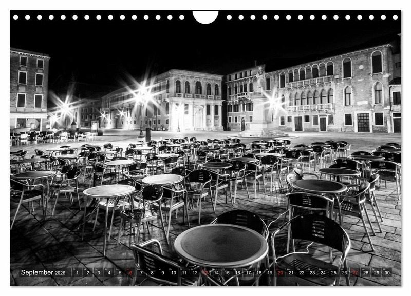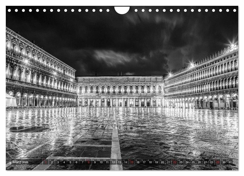 Erleben Sie die zauberhafte Eleganz der Lagunenstadt Venedig in 13 fantastischen nächtlichen schwarz-weiß Motiven sowie kurz vor Sonnenaufgang. Venedig ist eine der romantischsten Städte der Welt, mit schmalen Gassen und Kanälen, luxuriösen Palästen und prachtvollen Kirchen, die alle seit Jahrhunderten unverändert sind. Die Stadt wurde auf dem Wasser erbaut und besitzt eine überwältigende Fülle an Sehenswürdigkeiten - hier ganz ohne die üblichen Menschenmassen in der Stille der Dunkelheit.