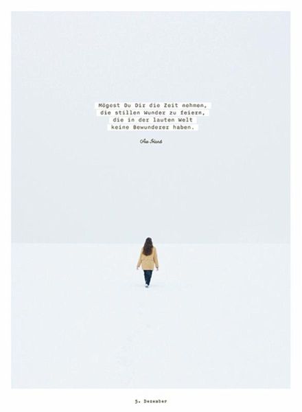 Diesmal erstmals ohne feste Jahreszahl, lässt er sich in diesem oder im nächsten Advent verschenken. Sonntagsgedanken laden zum Innehalten ein, zauberhafte Illustrationen und verträumte Fotografien, sowie Zitate und winterliche Rezepte machen den Adventskalender zu dem, was er ist: Ein Schmuckstück. Ein Licht in der Adventszeit, der Zeit der Vorfreude.