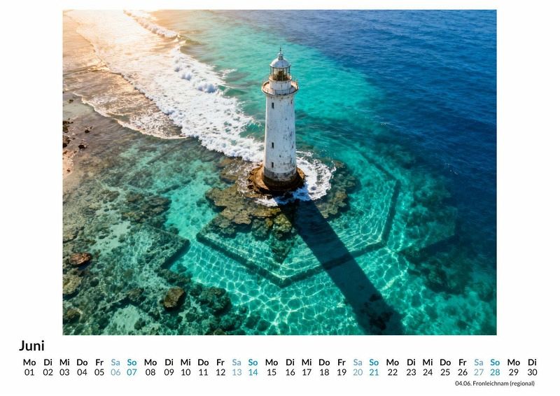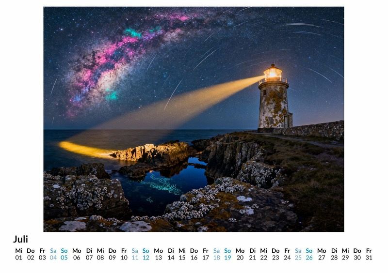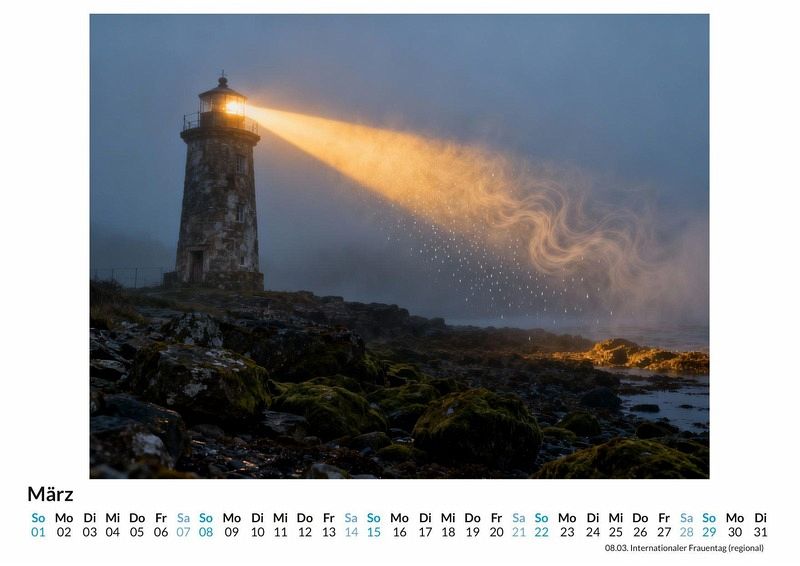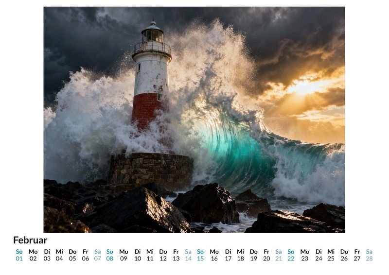 Sie trotzen den stürmischsten Wellen und stehen als einsame Wächter an den Rändern der Welt. Der Kalender "Leuchttürme an der Küste" fängt diese Momente ein, in denen die Kraft der Natur auf die Standhaftigkeit der Architektur trifft. Jedes Monatsblatt ist eine Komposition aus Licht, Wetter und Meer, die die majestätische Präsenz dieser Bauwerke zelebriert. Dieser Kalender ist eine ideale Wahl: * Für Liebhaber maritimer Motive und der rauen Schönheit der Küstenlandschaften. * Für Menschen, die eine Vorliebe für dramatische Lichtstimmungen und eindrucksvolle Kompositionen haben. * Für alle, die einen besonderen Wandschmuck suchen, der Monat für Monat eine neue Geschichte erzählt. Jeder Monat enthüllt eine neue Szenerie. Mal peitscht die Gischt gegen die Mauern eines steinernen Turms, mal taucht die untergehende Sonne den Horizont in ein warmes Licht. Die Motive zeigen die Leuchttürme in ihrer ganzen Vielfalt, von klassischen Bauten bis hin zu modernen Konstruktionen. Jedes Bild wurde durch einen kreativen Dialog zwischen menschlicher Vision und maschineller Interpretation erschaffen, um eine einzigartige visuelle Tiefe zu erzeugen. Mit dem Kauf dieses Kalenders erhält man: * Zwölf Monatsblätter mit unterschiedlichen Leuchtturmmotiven. * Ein übersichtliches Kalendarium für die Planung des Jahres. * Eine Sammlung von Bildern, die Stärke und Ruhe zugleich ausstrahlen. Dieser Kalender ist mehr als nur ein Zeitplaner; er ist eine Hommage an die unerschütterlichen Wahrzeichen der Küsten. Eine Einladung, die dramatische Schönheit der Leuchttürme das ganze Jahr über zu erleben. Ein Blick auf die Monatsansichten lohnt sich.