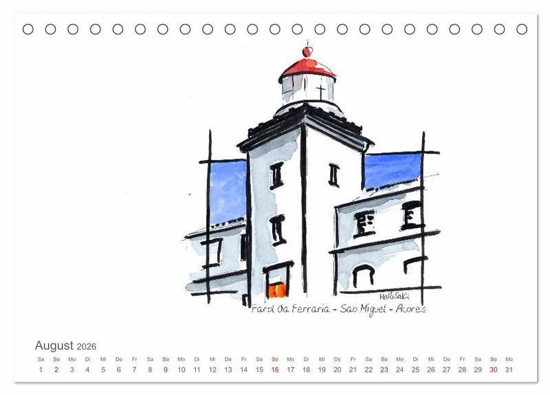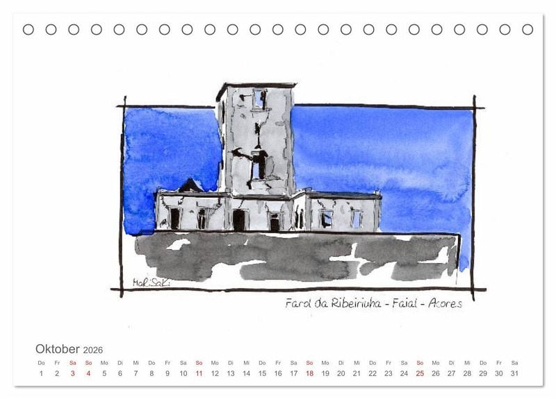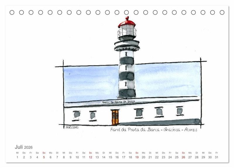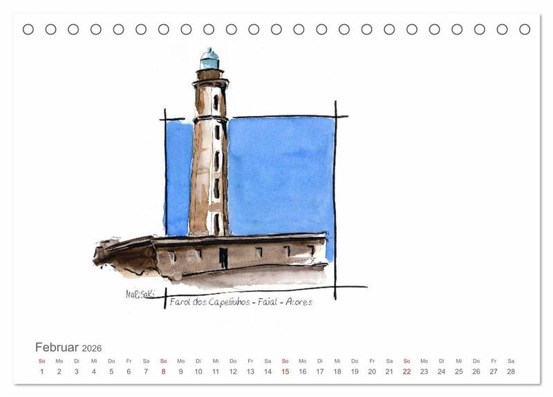 Leuchttürme - alleine auf den Inseln der Azoren finden wir eine interessante Vielfalt an architektonischen Formen, die Marisa Kirko in ihren Skizzen zeigt.