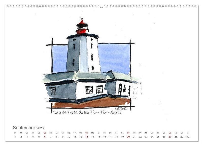 Leuchttürme - alleine auf den Inseln der Azoren finden wir eine interessante Vielfalt an architektonischen Formen, die Marisa Kirko in ihren Skizzen zeigt. Ein Sehnsuchtsort für alle, die das Meer lieben!