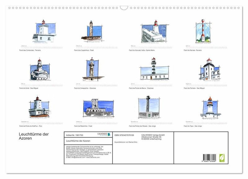 QUALITÄT - Hochwertiger Fotokalender mit 12 wunderschönen Motiven auf lichtbeständigem Bilderdruckpapier, robuste Spiralbindung mit Aufhängebügel.NACHHALTIG - deutliche Abfallreduzierung durch bedarfsgerechte Einzelstückfertigung, umweltfreundliches FSC-zertifiziertes Papier, Produktion in Deutschland, klimabewusste Logistik.PERFEKTES GESCHENK - Kalender für Freunde und Familie, für Kinder und Erwachsene, jung und alt, zu Weihnachten, Geburtstag oder zwischendurch.VIELFALT - Bildkalender in verschiedenen Formaten, z.B. DIN A5, DIN A4, DIN A3 sowie DIN A2. Ob Naturmotiv, Gemälde oder Fotos, ideal für ein persönliches Wohlfühlambiente.Leuchttürme der Sehnsuchtsinseln Azoren - Symbol für Orientierung, für Weite und Heimat finden von Autor(in): Marisa Kirkorowicz