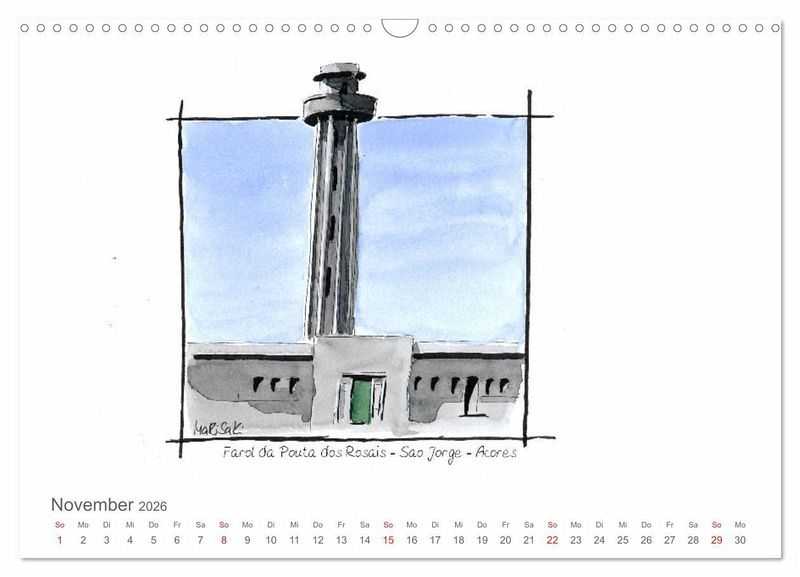 Leuchttürme - alleine auf den Inseln der Azoren finden wir eine interessante Vielfalt an architektonischen Formen, die Marisa Kirko in ihren Skizzen zeigt.
