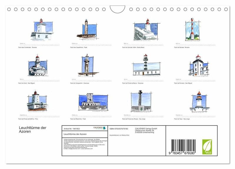 QUALITÄT - Hochwertiger Fotokalender mit 12 wunderschönen Motiven auf lichtbeständigem Bilderdruckpapier, robuste Spiralbindung mit Aufhängebügel.NACHHALTIG - deutliche Abfallreduzierung durch bedarfsgerechte Einzelstückfertigung, umweltfreundliches FSC-zertifiziertes Papier, Produktion in Deutschland, klimabewusste Logistik.PERFEKTES GESCHENK - Kalender für Freunde und Familie, für Kinder und Erwachsene, jung und alt, zu Weihnachten, Geburtstag oder zwischendurch.VIELFALT - Bildkalender in verschiedenen Formaten, z.B. DIN A5, DIN A4, DIN A3 sowie DIN A2. Ob Naturmotiv, Gemälde oder Fotos, ideal für ein persönliches Wohlfühlambiente.Leuchttürme der Sehnsuchtsinseln Azoren - Symbol für Orientierung, für Weite und Heimat finden von Autor(in): Marisa Kirkorowicz