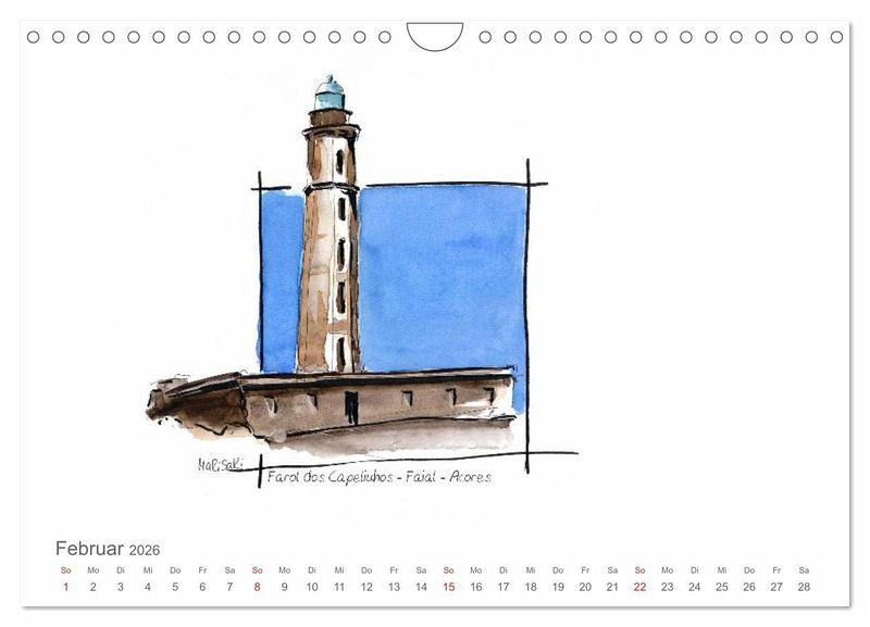 Leuchttürme - alleine auf den Inseln der Azoren finden wir eine interessante Vielfalt an architektonischen Formen, die Marisa Kirko in ihren Skizzen zeigt.
