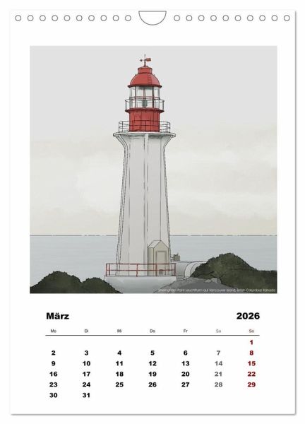 Entdecken Sie jeden Monat die faszinierende Welt Küstenlandschaften mit dem Wandkalender "Leuchttürme der Welt - illustriert". Illustrationen von ikonischen Leuchttürmen aus verschiedenen Teilen der Welt und unterschiedlichster, maritimer Architektur dekorieren Ihr Zuhause oder Büro auf eine besondere Weise. Das ist der richtige und wichtige Wandkalender für Seefahrer, Entdecker und Leuchtturmsammler!
