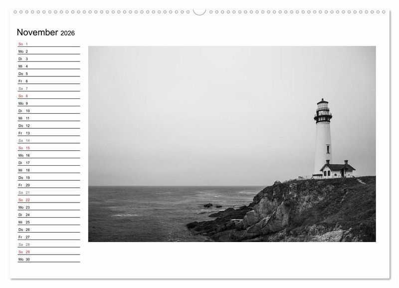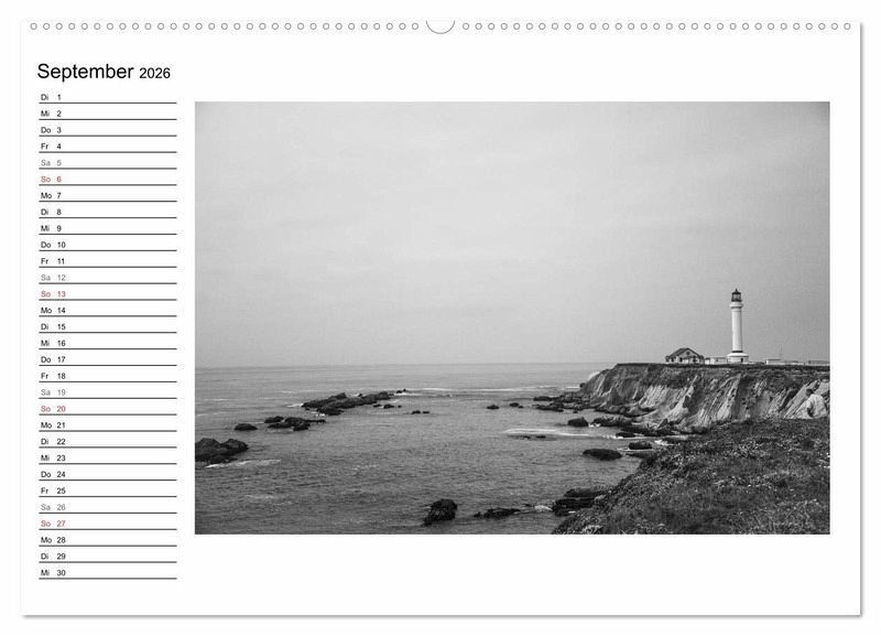 Die Westküste der USA beherbergt in ihren Staaten Kalifornien, Oregon und Washington zahlreiche Leuchttürme. Eine Auswahl der schönsten finden Sie in diesem Kalender. Schüren Sie Ihre Reisefreude oder frischen Sie Ihre Urlaubserinnerungen auf - jeden Monat aufs Neue!