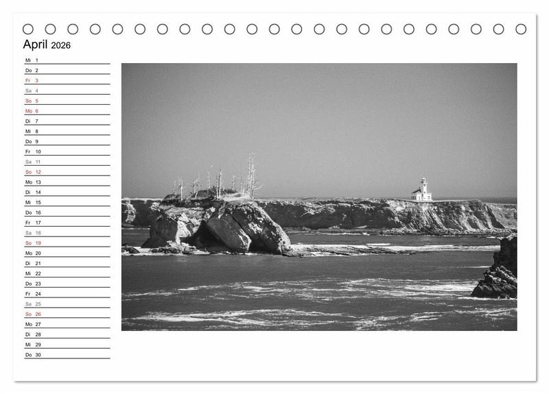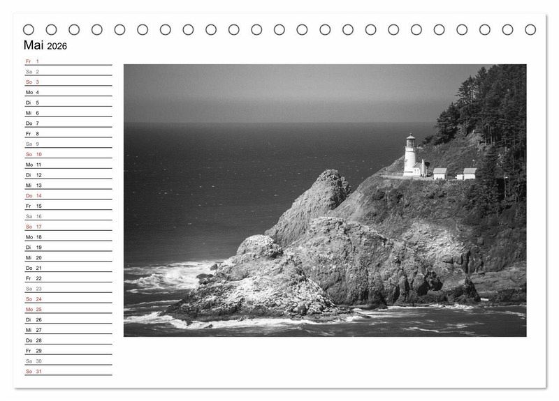 Die Westküste der USA beherbergt in ihren Staaten Kalifornien, Oregon und Washington zahlreiche Leuchttürme. Eine Auswahl der schönsten finden Sie in diesem Kalender. Schüren Sie Ihre Reisefreude oder frischen Sie Ihre Urlaubserinnerungen auf - jeden Monat aufs Neue!