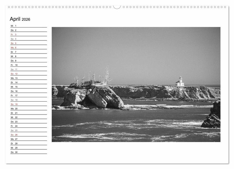 Die Westküste der USA beherbergt in ihren Staaten Kalifornien, Oregon und Washington zahlreiche Leuchttürme. Eine Auswahl der schönsten finden Sie in diesem Kalender. Schüren Sie Ihre Reisefreude oder frischen Sie Ihre Urlaubserinnerungen auf - jeden Monat aufs Neue!
