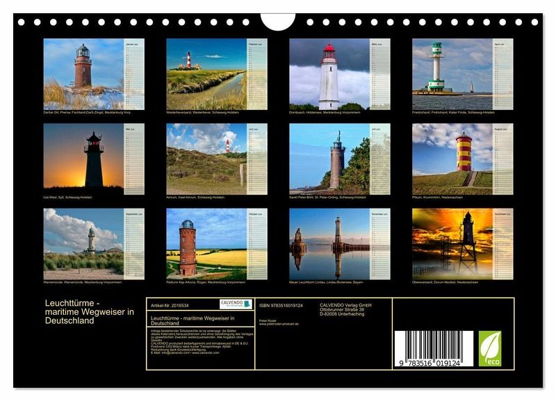 Schon immer waren die Menschen von Leuchttürmen fasziniert. Für die Freunde dieser meist imposanten Bauwerke hat der Fotokünstler Peter Roder zwölf beeindruckende Aufnahmen von Leuchttürmen in Deutschland zusammengestellt und gestaltet, ein wunderschöner Kalender mit Bildern für das ganze Jahr.