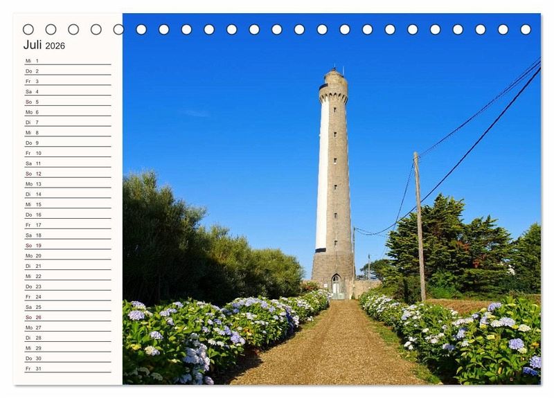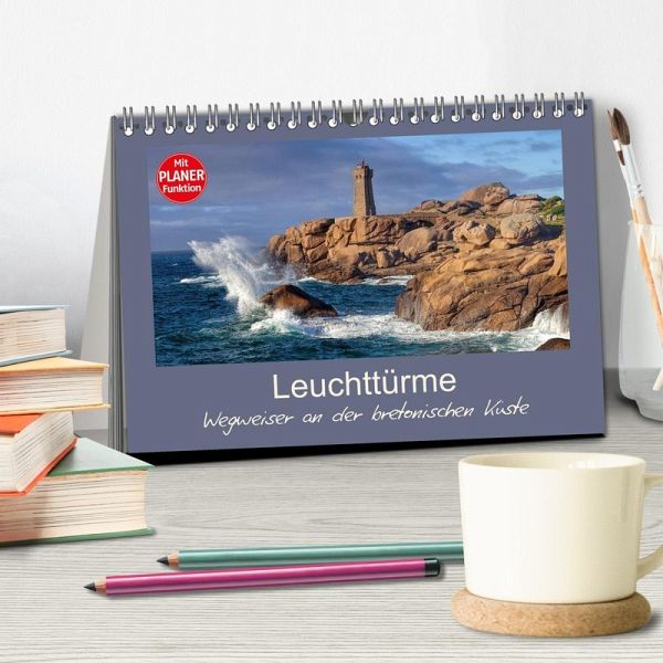 Leuchttürme gehören zu den Wahrzeichen der Bretagne. Klein oder groß, mitten im Meer, auf einer Insel oder an Land, groß und breit oder schmal und elegant - eindrucksvoll sind sie alle. Gerade das Finistère, der äußerste Zipfel Europas, hat viele eindrucksvolle Landspitzen mit ihren Leuchttürmen zu bieten. Da im 19. Jahrhundert die Reichweite der Leuchtfeuer erhöht wurde, sind oftmals zwei oder drei Türme zu sehen. Entdecken sie mit diesem Planer/Geburtstagskalender die Vielfalt dieser maritimen Zeitzeugen - sogar ein Feuerschiff ist mit dabei.
