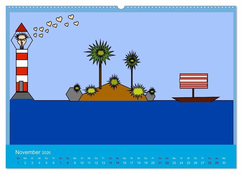 November: Insel mit Segelschiff