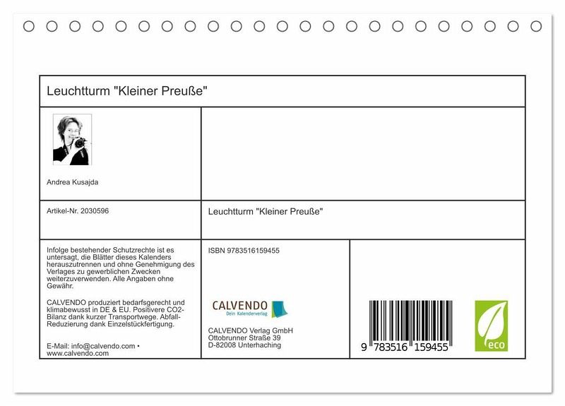 Eingebettet in seiner schönen Umgebung und nicht zuletzt mit dem "Weltnaturerbe Wattenmeer" in seiner unmittelbaren Nähe ist er ein sehenswertes Highlight an der Nordseeküste. Dieser Kalender soll nicht nur Leuchtturmliebhabern die Gelegenheit geben, sich vom Charme des "Kleinen Preußen" zu überzeugen.