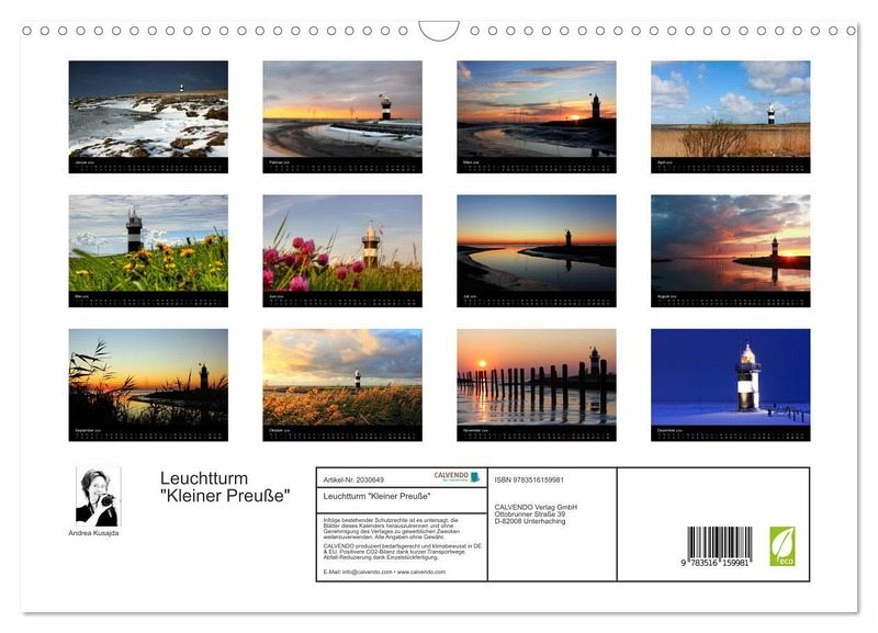 Eingebettet in seiner schönen Umgebung und nicht zuletzt mit dem "Weltnaturerbe Wattenmeer" in seiner unmittelbaren Nähe ist er ein sehenswertes Highlight an der Nordseeküste. Dieser Kalender soll nicht nur Leuchtturmliebhabern die Gelegenheit geben, sich vom Charme des "Kleinen Preußen" zu überzeugen.