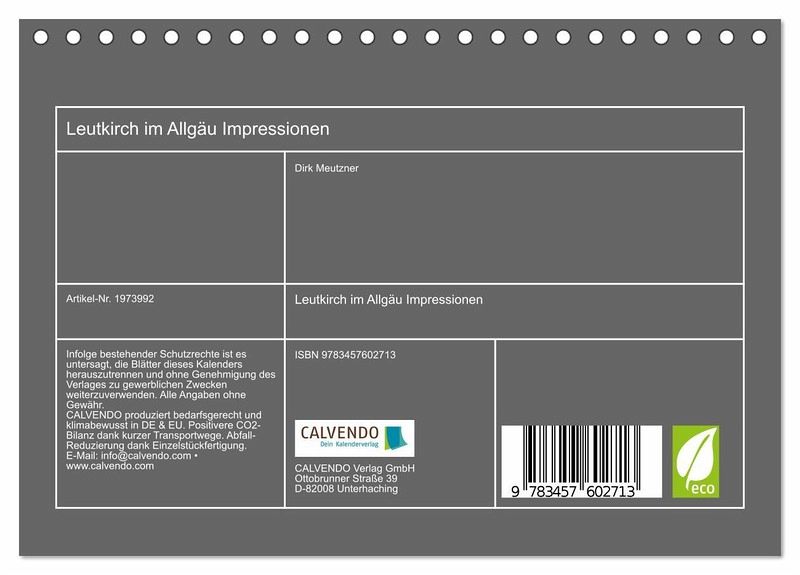 QUALITÄT - Hochwertiger Fotokalender mit 12 wunderschönen Motiven auf lichtbeständigem Bilderdruckpapier, robuste Spiralbindung.NACHHALTIG - deutliche Abfallreduzierung durch bedarfsgerechte Einzelstückfertigung, umweltfreundliches FSC-zertifiziertes Papier, Produktion in Deutschland, klimabewusste Logistik.PERFEKTES GESCHENK - Kalender für Freunde und Familie, für Kinder und Erwachsene, jung und alt, zu Weihnachten, Geburtstag oder zwischendurch.VIELFALT - Bildkalender in verschiedenen Formaten, z.B. DIN A5, DIN A4, DIN A3 sowie DIN A2. Ob Naturmotiv, Gemälde oder Fotos, ideal für ein persönliches Wohlfühlambiente.Einzigartige Ansichten der wunderschönen Stadt Leutkirch im Allgäu von Autor(in): Dirk Meutzner