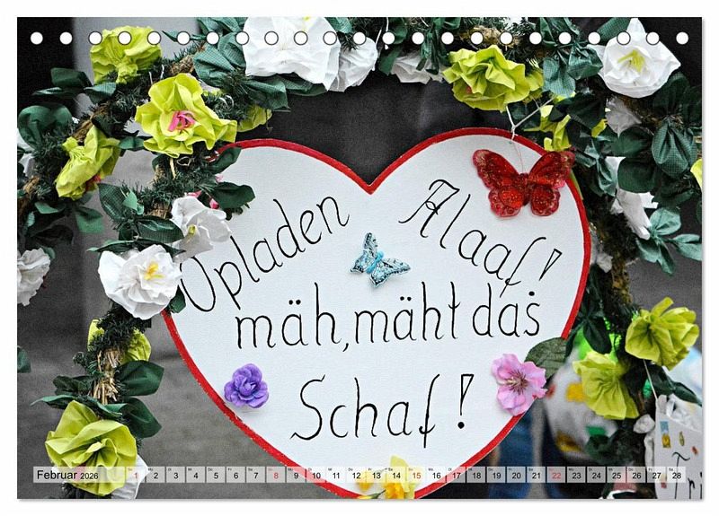 Februar: Ein Motto des Karnevalsumzugs in Opladen