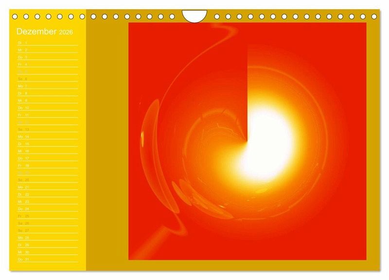 Herzlich Willkommen in der faszinierenden Welt der Licht-Portale. Ich freue mich, Ihnen diesen wundervollen Energie-Kunst-Kalender vorstellen zu dürfen - die Farben erstrahlen im leuchtendsten sonnengelb - ein wahrhaftig durch und durch positiv motivierender Jahres- und Tagbegleiter für zu Hause oder an Ihrem Arbeitsplatz.Alles in unserer Welt - sogar das für unser Auge Unsichtbare - ist Energie und Schwingung und erscheint noch lebendiger durch Licht und Farbe. Die Licht-Portale haben eine motivierende und befreiende Eigen-Dynamik, in Abhängigkeit von Form und Farbe. Jeder, der sie betrachtet, wird individuell darauf reagieren. Die Lichtportale erhöhen das positive Raumklima (im Sinne des Feng-Shui), und eignen sich hervorragend zur Wand-Dekoration von Naturheilpraxen, Arztpraxen, Kliniken und REHA-Einrichtungen, Seniorenresidenzen, Yoga- und Wellness-Einrichtungen, Konferenzräumen, Büros, Hotels, Foyers und Wartezonen. Die Lichtportale dienen sowohl als stimulierende wie auch beruhigende Wohlfühl-Kunstobjekte und Dekorationen. Sie verschönern und harmonisieren Ihren privaten Wohnraum sowie Ihre Rückzugs- und Erholungs-Oasen. Es sind farbenprächtige Spiralen-Kunstwerke, die ein modernes Business-Interior noch facettenreicher zu gestalten vermögen. Energie-Kunst-Bilder von Ramon Labusch: International bekannter Energy-ART-Designer und Energie-Künstler für intuitive, visionäre und phantastische Energiekunst und Schwingungsbilder.LICHT-KUNST-SHOP: http://www.Licht-Portale.de Energie-Kunst-Webseite: http://www.Healing-Art-Deutschland.de Energie-Kunst-Shop: http://www.Energie-Kunst-Deutschland.de