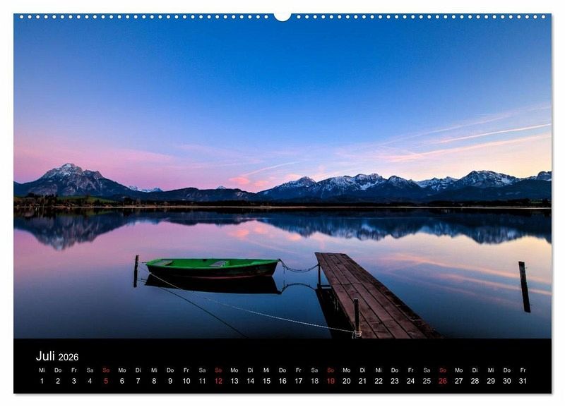 Die oberbayrische Alpenregion ist wegen ihrer Schönheit ein beliebtes Urlaubs- und Wanderziel. Majestätische Bergmassive und idyllische Seen laden immer wieder zum Verweilen und ehrfürchtigen Staunen ein. Die zwölf Bilder des Kalenders fangen die besonderen Lichtstimmungen, in welche die Landschaft getaucht wird, auf faszinierende Weise ein.