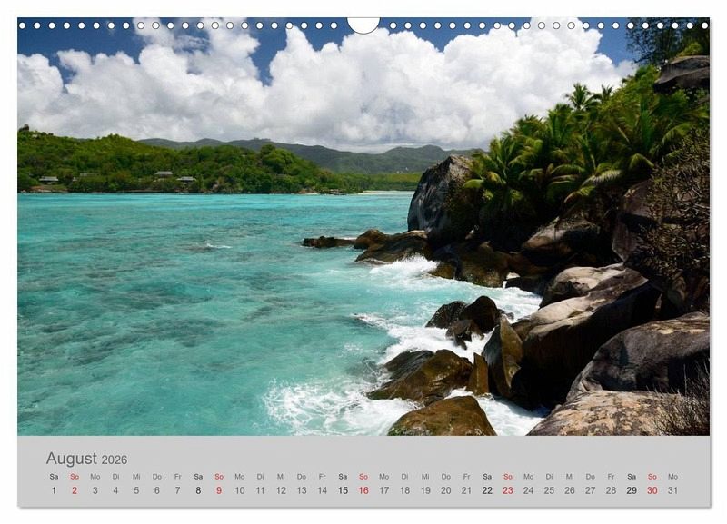 Auf den Seychellen gibt es die schönsten Strände der Welt. Der Sand ist so fein wie Puderzucker, das Wasser kristallklar und die Granitformationen sind spektakulär. Die Inseln bieten absolute Ruhe und Entspannung. Hier sind 13 beeindruckende Lichtblicke in einem Kalender vereint. Die perfekte Einstimmung auf das ideale Reiseziel für alle, die auf der Suche nach einem erholsamen und eindrucksvollen Teil unseres Planeten sind.