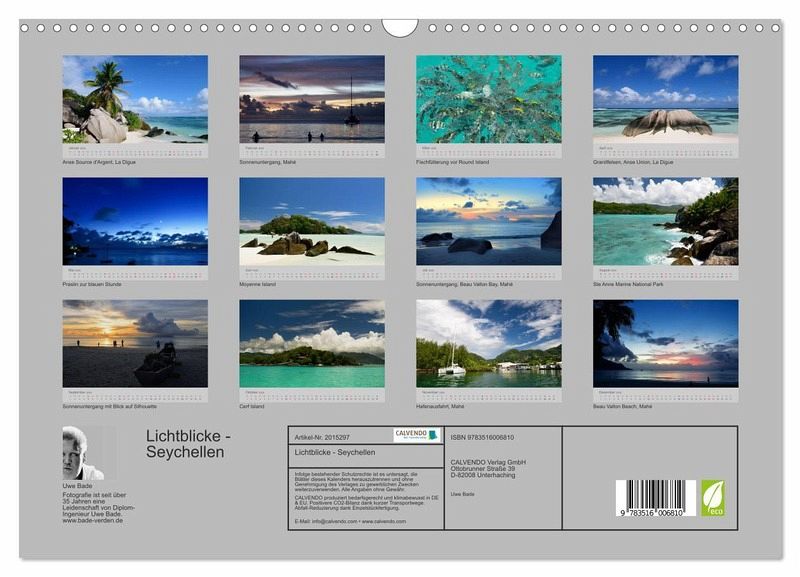 QUALITÄT - Hochwertiger Fotokalender mit 12 wunderschönen Motiven auf lichtbeständigem Bilderdruckpapier, robuste Spiralbindung mit Aufhängebügel.NACHHALTIG - deutliche Abfallreduzierung durch bedarfsgerechte Einzelstückfertigung, umweltfreundliches FSC-zertifiziertes Papier, Produktion in Deutschland, klimabewusste Logistik.PERFEKTES GESCHENK - Kalender für Freunde und Familie, für Kinder und Erwachsene, jung und alt, zu Weihnachten, Geburtstag oder zwischendurch.VIELFALT - Bildkalender in verschiedenen Formaten, z.B. DIN A5, DIN A4, DIN A3 sowie DIN A2. Ob Naturmotiv, Gemälde oder Fotos, ideal für ein persönliches Wohlfühlambiente.Die Seychellen - der perfekten Ort, ein Stück vom Paradies kennenzulernen. von Autor(in): uwela