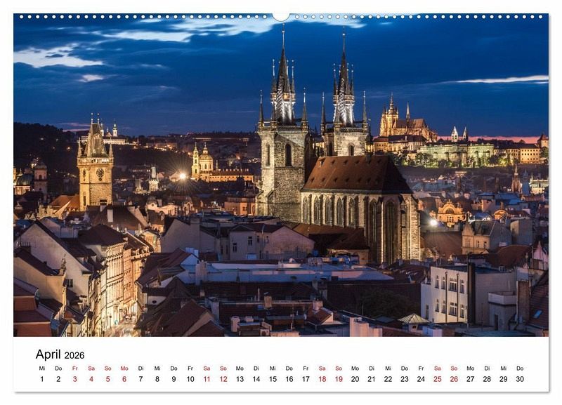 Die Blaue Stunde ist die Zeit kurz vor Sonnenaufgang oder kurz nach Sonnenuntergang, wenn der Himmel in einem intensiven Blau erstrahlt. In dieser magischen Zeit verwandeln sich die europäischen Städte in leuchtende Kunstwerke, die du auf diesem Kalender bewundern kannst.