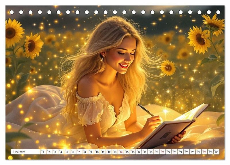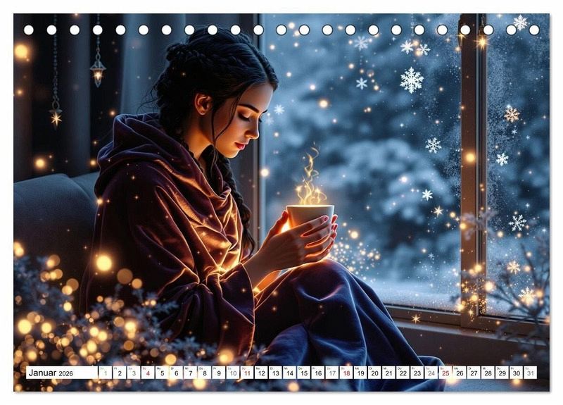 Dieser Kalender fängt die Magie des Jahres ein. Tauche ein in eine Welt voller Ruhe und Besinnlichkeit, in der junge Frauen in traumhaften, leuchtenden Szenen dargestellt werden. Jedes Monatsbild ist ein einzigartiges Kunstwerk, das mit unzähligen Funkeln, glitzernden Lichteffekten und sanften Farben verzaubert. Ein Jahr voller Lichtgeflüster, das die Seele wärmt und dir jeden Tag ein Lächeln schenkt. Ein perfektes Geschenk für alle, die sich nach etwas Zauber und Magie im Alltag sehnen. Alle Bilder wurden mit KI generiert und aufwendig bearbeitet.