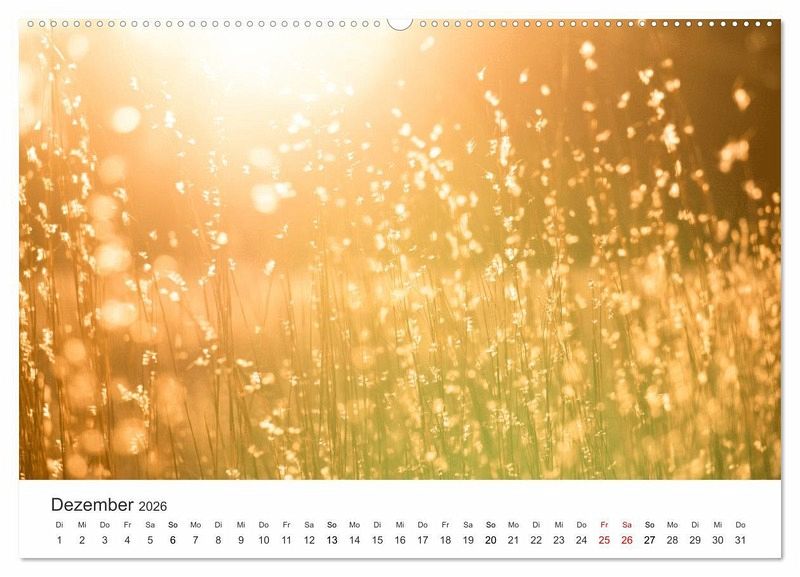 Schöne Lichtmomente sind natürlich Sonnenauf- und Sonnenuntergänge. Sie können aber auch auftreten, wenn die Sonne durch eine Waldlichtung strahlt und wenn sie zwischen den Wolken hervorkommt. Solche Momente geben viel Kraft und bringen uns zum Lächeln. Dieser Kalender hält diese kostbaren Momente mit wunderschönen Fotografien fest.