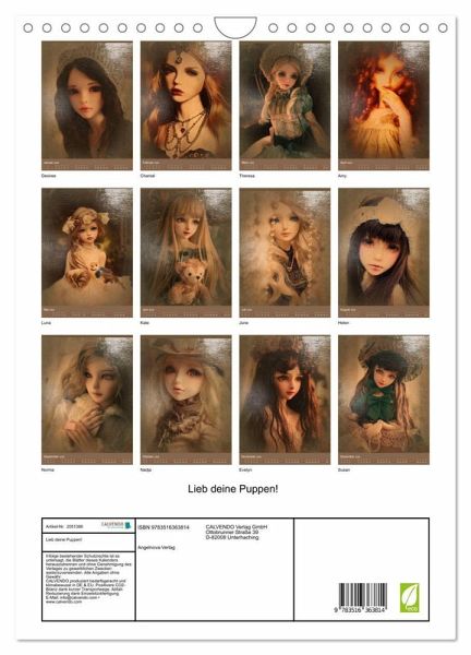 QUALITÄT - Hochwertiger Fotokalender mit 12 wunderschönen Motiven auf lichtbeständigem Bilderdruckpapier, robuste Spiralbindung mit Aufhängebügel.NACHHALTIG - deutliche Abfallreduzierung durch bedarfsgerechte Einzelstückfertigung, umweltfreundliches FSC-zertifiziertes Papier, Produktion in Deutschland, klimabewusste Logistik.PERFEKTES GESCHENK - Kalender für Freunde und Familie, für Kinder und Erwachsene, jung und alt, zu Weihnachten, Geburtstag oder zwischendurch.VIELFALT - Bildkalender in verschiedenen Formaten, z.B. DIN A5, DIN A4, DIN A3 sowie DIN A2. Ob Naturmotiv, Gemälde oder Fotos, ideal für ein persönliches Wohlfühlambiente.Wunderschöne Puppen aufwendig in Szene gesetzt. Durch den besonderen Ölbildfilter wirken die Bilder wie aus einer anderen Zeit. Vintage ist immer noch zeitgemäß und ein Highlight. von Autor(in): Silvia Siebler-Ferry