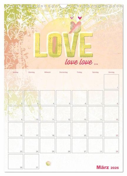 Dieser Kalender erinnert uns jeden Tag an das größte Geschenk in unserem Leben, die Liebe. Ein ideales Geschenk für Liebende, Poeten, Träumer, Freunde, Familien und alle Geliebten.