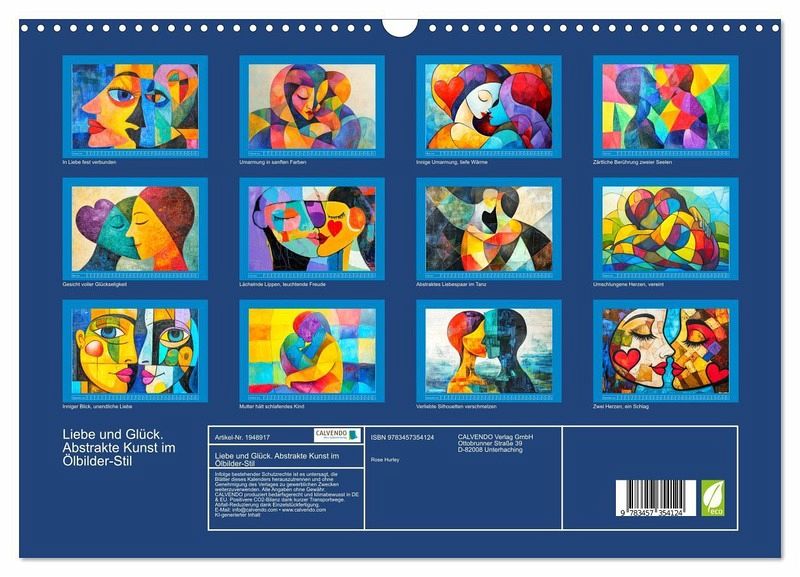 Dieser Kalender zeigt zwölf einzigartige und mit Hilfe von KI erstellte Kunst, die das Thema Liebe und Glück einfangen. Jedes Bild verkörpert emotionale Verbindungen, von zarten Liebespaaren bis hin zu innigen Momenten zwischen Mutter und Kind. Die abstrakten Darstellungen laden den Betrachter dazu ein, die tiefe Bedeutung dieser Beziehungen neu zu entdecken. Der Kalender ist ein inspirierendes Kunstwerk, das jeden Monat mit einem Hauch von Freude und Zuneigung bereichert.