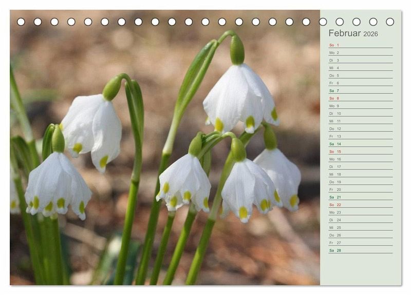 Besonders im Frühling schenkt uns die Natur eine Vielzahl von verschiedenen Glockenblüten. Schneeglöckchen und Maiglöckchen kennt fast jeder, aber darüber hinaus können Sie in diesem Kalender noch andere Glockenblumen kennenlernen. Gönnen Sie sich diese erfrischenden Fotos ein ganzes Jahr lang.