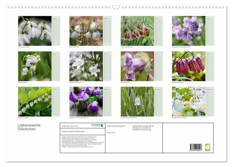Besonders im Frühling schenkt uns die Natur eine Vielzahl von verschiedenen Glockenblüten. Schneeglöckchen und Maiglöckchen kennt fast jeder, aber darüber hinaus können Sie in diesem Kalender noch andere Glockenblumen kennenlernen. Gönnen Sie sich diese erfrischenden Fotos ein ganzes Jahr lang.