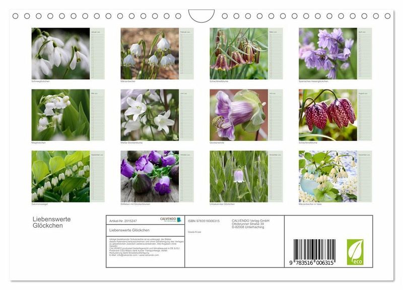 Besonders im Frühling schenkt uns die Natur eine Vielzahl von verschiedenen Glockenblüten. Schneeglöckchen und Maiglöckchen kennt fast jeder, aber darüber hinaus können Sie in diesem Kalender noch andere Glockenblumen kennenlernen. Gönnen Sie sich diese erfrischenden Fotos ein ganzes Jahr lang.