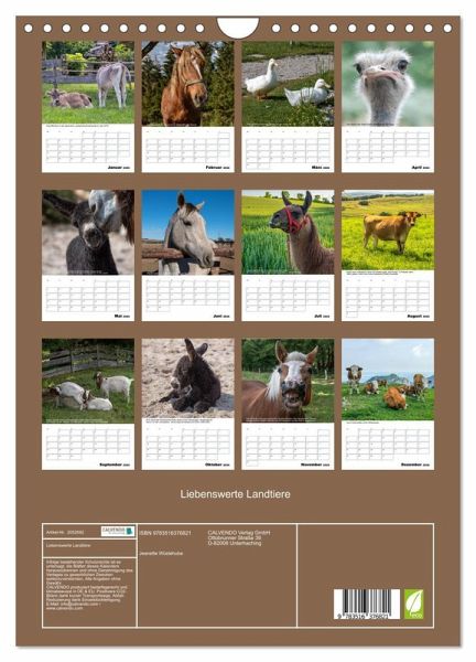 Pferde und Esel, Lama und Kuh, Ente und Strauß - viele liebenswerte Tiere findet man bei uns auf dem Land. Die Aufnahmen sind beim Wandern in den Bergen, auf Ausflügen im Norden Deutschlands, bei Spaziergängen in der Natur oder Tagestouren mit Lama und Esel entstanden. Der Monatsplaner stellt jeden Monat ein anderes Tiermotiv in den Mittelpunkt. Und Sie erfahren außerdem noch interessante Fakten zu den gezeigten Tieren.