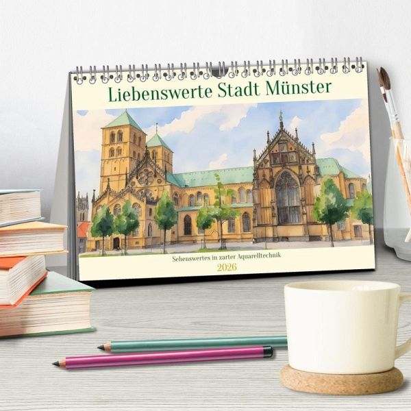 Münster ist eine wunderschöne Stadt im Westfälischen Münsterland, bekannt für ihre lebendige Geschichte, hohe Lebensqualität und entspannte Atmosphäre. Die Altstadt Münster besticht mit ihrer gotischen Architektur, historischen Fassaden und ihren malerischen Plätzen und Gassen. In der Stadt findet man Erholung im Freilandmuseum, Botanischen Garten, Schlosspark und Allwetterzoo. Outdoor-Aktivitäten, wie Bootfahren am Aasee oder Joggen in den vielen Grünanlagen bieten sich an. Die Mischung aus historischen Sehenswürdigkeiten, familienfreundlicher Infrastruktur, Kulturangeboten und Natur macht Münster besonders angenehm zum Verweilen. Ich habe einige Highlights der Stadt mithilfe moderner Bildbearbeitung in zarte Aquarellstil-Ansichten gewandelt, die den Charme Münsters widerspiegeln.