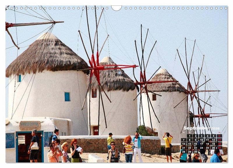 September: Windmühlen auf Mykonos