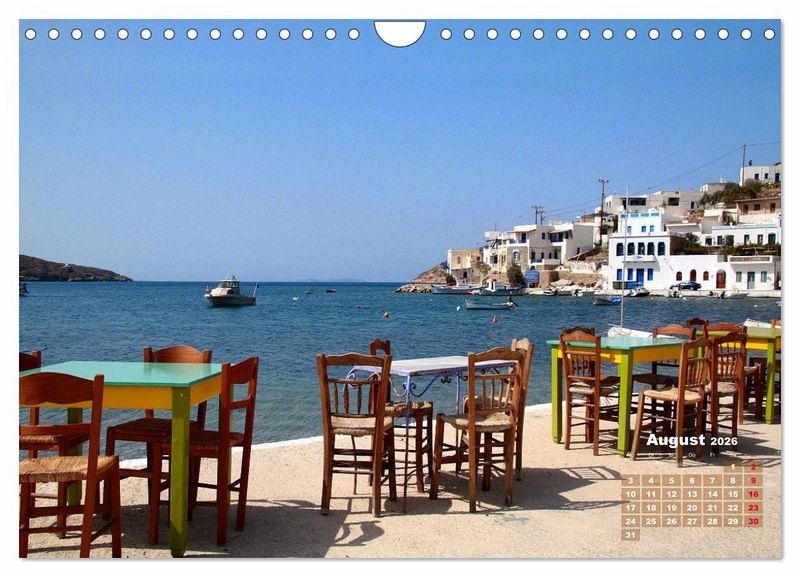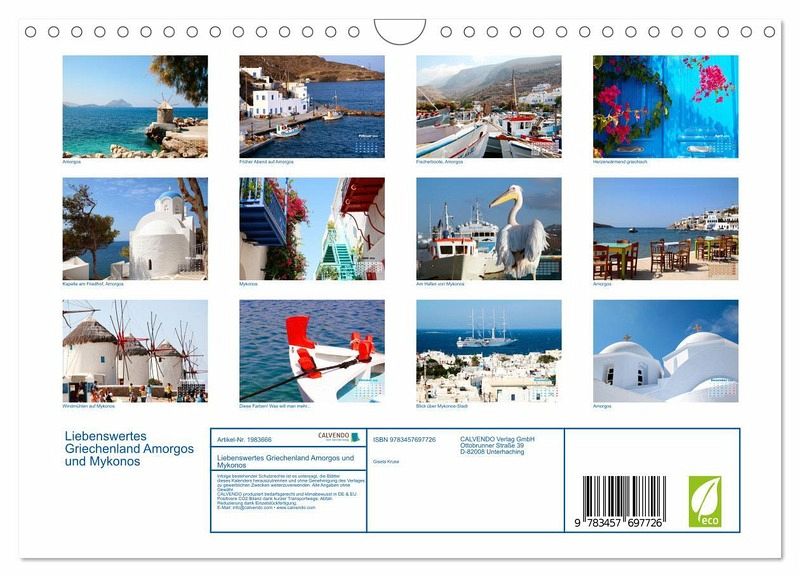 Schwelgen Sie in Erinnerungen an vergangene Griechenlandreisen und befeuern Sie die Lust auf Wiederholung und Vertiefung Ihrer Eindrücke. Der farbenfroh leuchtende Kalender verstärkt Ihre Griechenlandträume mit stimmungsvollen Fotos von Amorgos und Mykonos, zweier Kykladeninseln.