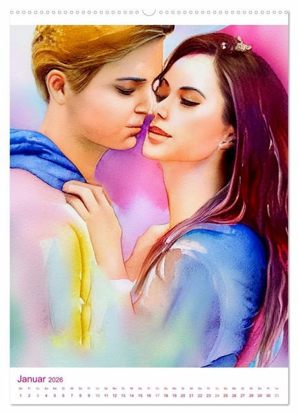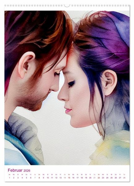 Egal wie alt man ist, wenn man sich verliebt hat, möchte man nur in der Nähe des anderen sein. Die innige Zweisamkeit und die liebevolle Zärtlichkeit zwischen Paaren fängt dieser Kalender auf romantischen Bildern in Watercolor ein. Alle Aquarelle wurden mit Unterstützung einer KI editiert.