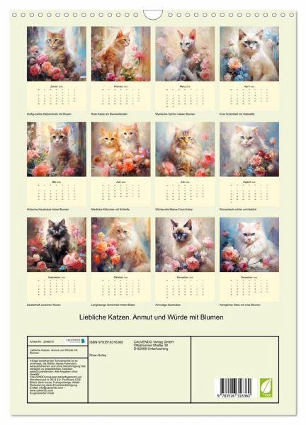 QUALITÄT - Hochwertiger Fotokalender mit 12 wunderschönen Motiven auf lichtbeständigem Bilderdruckpapier, robuste Spiralbindung mit Aufhängebügel.NACHHALTIG - deutliche Abfallreduzierung durch bedarfsgerechte Einzelstückfertigung, umweltfreundliches FSC-zertifiziertes Papier, Produktion in Deutschland, klimabewusste Logistik.PERFEKTES GESCHENK - Kalender für Freunde und Familie, für Kinder und Erwachsene, jung und alt, zu Weihnachten, Geburtstag oder zwischendurch.VIELFALT - Bildkalender in verschiedenen Formaten, z.B. DIN A5, DIN A4, DIN A3 sowie DIN A2. Ob Naturmotiv, Gemälde oder Fotos, ideal für ein persönliches Wohlfühlambiente.Romantisch-schöne Stubentiger zum verlieben von Autor(in): Rose Hurley